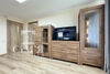В зале разместили новый и комфортный диван (раскладной), вместительный шкаф, стенка (комод и два пенала с подсветкой).