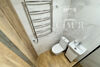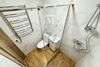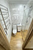 В санузле - современная душевая кабина с зеркальной перегородкой, также будет установлено зеркало над умывальником.