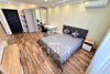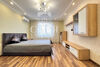 В комнате установлена двуспальная кровать с ортопедическим матрасом, напротив кровати - стенка с телевизором, письменный стол со стулом и вместительный шкаф-купе.