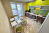 Встроенный кухонный гарнитур, обеденный стол, стулья. Из кухни есть выход на балкон.