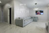 В гостевой части разместили комфортный угловой диван, напротив которого установлен большой телевизор и кондиционер. Из окон открывается шикарный панорамный вид на проспект Космонавтов.